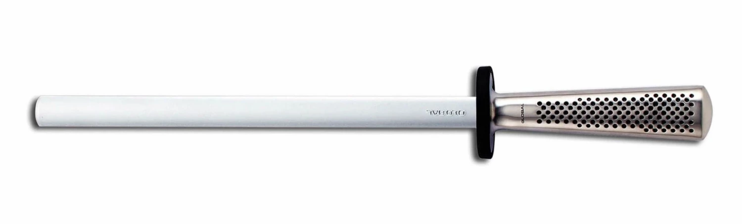 Also called Honing Steel. A ceramic or diamond-coated steel used to sharpen the blade of kitchen knives.