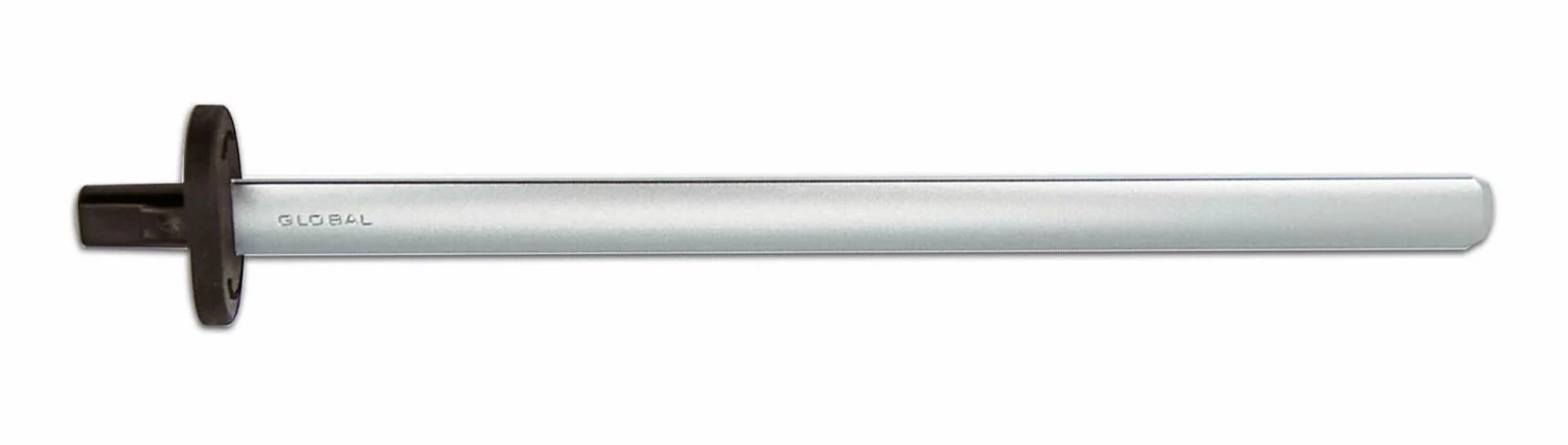Also called Honing Steel. A ceramic or diamond-coated steel used to sharpen the blade of kitchen knives.