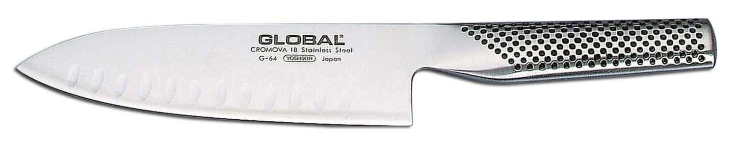 The chef’s knife with hollow ground/granton edge is the multipurpose workhorse of the kitchen. Perfect for mincing, cutting, chopping, slicing and prep work. The scalloped grooves on the sides of the blade edge helps with reducing friction and sticking of foods.