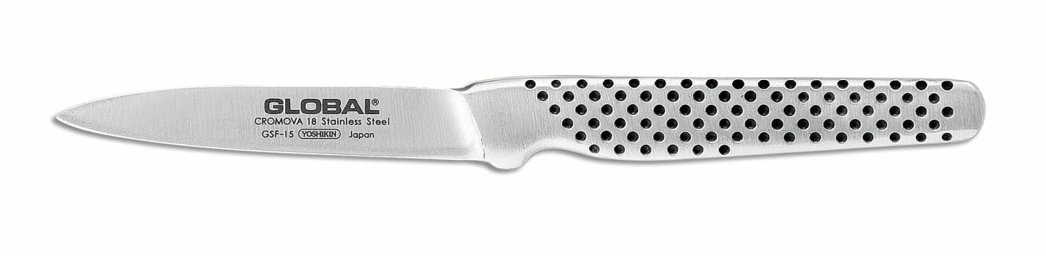 The perfect knife for peeling, paring and chopping smaller food items. It is also used to make a cut known as a tourné cut in vegetables such as carrots. It is a specialized type of paring knife. The GSF series is a collection of small, drop-forged knives for general and special preparation.