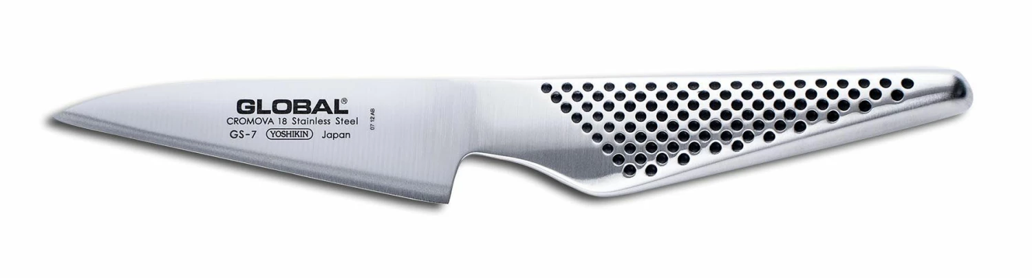 A multipurpose small knife that is great for hand peeling, precision cutting, slicing and detail cuts. Perfect knife to devein shrimp, and for removing seeds from chilli peppers and skinning or cutting small garnishes. The GS series is a classic collection of small to medium-sized knives for general and special preparation.