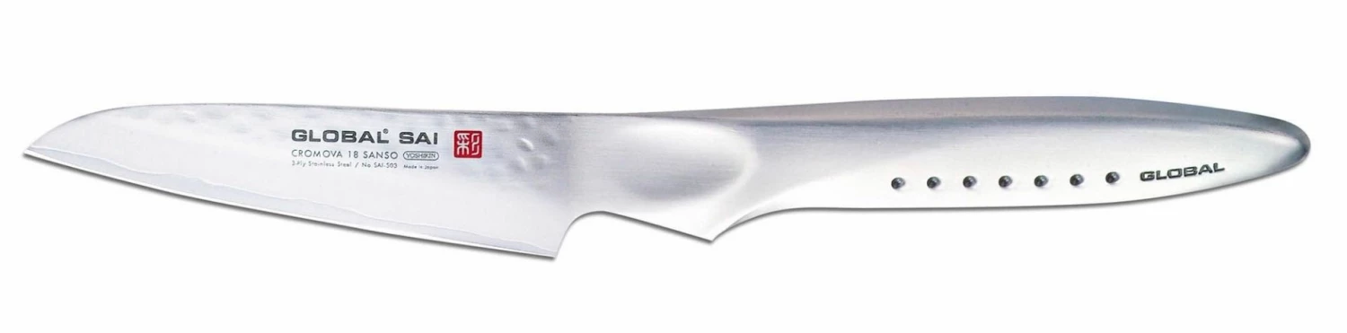 A multipurpose small knife that is great for hand peeling, precision cutting, slicing and detail cuts. Perfect knife to devein shrimp, and for removing seeds from chilli peppers and skinning or cutting small garnishes.